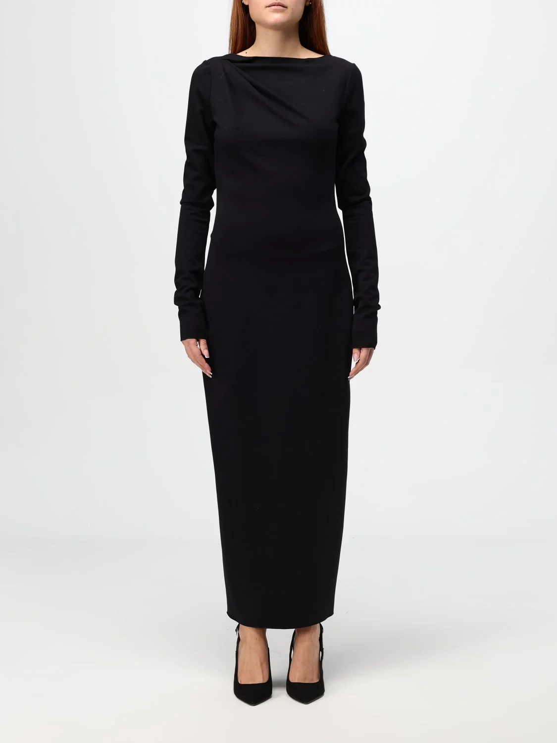 DESCRIPTION - Occasion: Ceremony and cocktail, Evening and party - Length: Midi - Neckline: Straight - Shoulders: Regular - Sleeves: Long - Closure: Back closure with zip - Bottom: With straight hemline - Materials: Wool blend - Pattern: Plain-colored DETAILS AND CARE Composition FABRIC : WOOL 65% POLYAMIDE 25% ELASTANE SIZE AND FIT Sizes not available Size and fit Slim fit Designer code: 6D2A8B2JIHZ 0999 Giglio Code: 414415 Designer: Emporio Armani Collection: Emporio Armani Woman Category: Clothing Emporio Armani