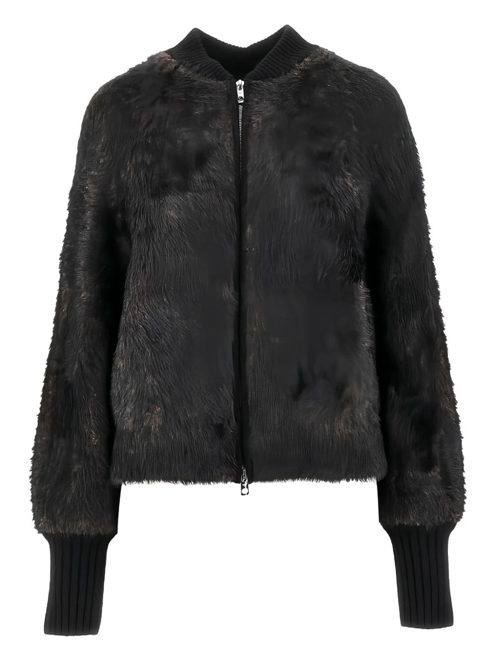 faux-fur jacket Highlights - Black - Ribbed detailing - Zip closure - Long sleeves - Crew neck Imported Composition Viscose 76%, Polyester 20%, Wool 4% Washing instructions Read Manufacturer Guidelines