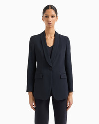 This jacket, made of flowing envers satin, gently follows the silhouette. Designed for the multi-tasking modern woman who requires an impeccable look. Domed button closure and satin-lined. The piece belongs to the Essentials selection, the Emporio Armani capsule collection that makes a statement of enduring style: both elegant and practical, it works for numerous combinations on a wide array of occasions. The colour palette includes the brand’s characteristic neutral shades, combined with a minimalist design to create a series of key pieces for the female wardrobe. Product Code: 0NG3DT020031926 Details Composition 70% Acetate 30% Viscose Envers satin Single-breasted Shawl collar Closure with satin-covered dome button Side welt pockets with flap Satin welts Long sleeves Button cuffs Satin lining Fitting The model is 178 cm tall and is wearing size 40/S (Italian Size)