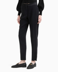 Trousers with a tapered left made from envers satin, a fluid fabric that glides softly over the body. The cosy, lightweight texture underlines the femininity of the piece, making it an essential and modern style that is extremely versatile and adapts to different occasions. Ankle cuffs: 17 cm Envers satin Shiny satin waist Zip and hook closure Side pockets Buttoned back welt pockets Unlined garment Product Code: EW001591TE10419UC001