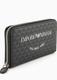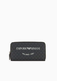 Zip-around wallet with all-over eagle and Milano 1981 logo print