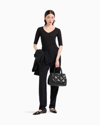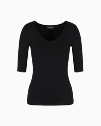 Women’s jumper in viscose stretch jersey with three-quarter length sleeves that provides an impeccable look on a wide array of occasions. The naturally clingy viscose is enhanced by the plunging V neck. The piece belongs to the Essentials selection, the Emporio Armani capsule collection that makes a statement of enduring style: both elegant and practical, it works for numerous combinations on a wide array of occasions. The colour palette includes the brand’s characteristic neutral shades, combined with a minimalist design to create a series of key pieces for the female wardrobe. Product Code: 8N2M8I2JGDZ10999 Details Composition 96% Viscose 4% Elastane Stretch jersey V neck Three-quarter sleeves Fitting The model is 178 cm tall and is wearing size 40/S (Italian Size)