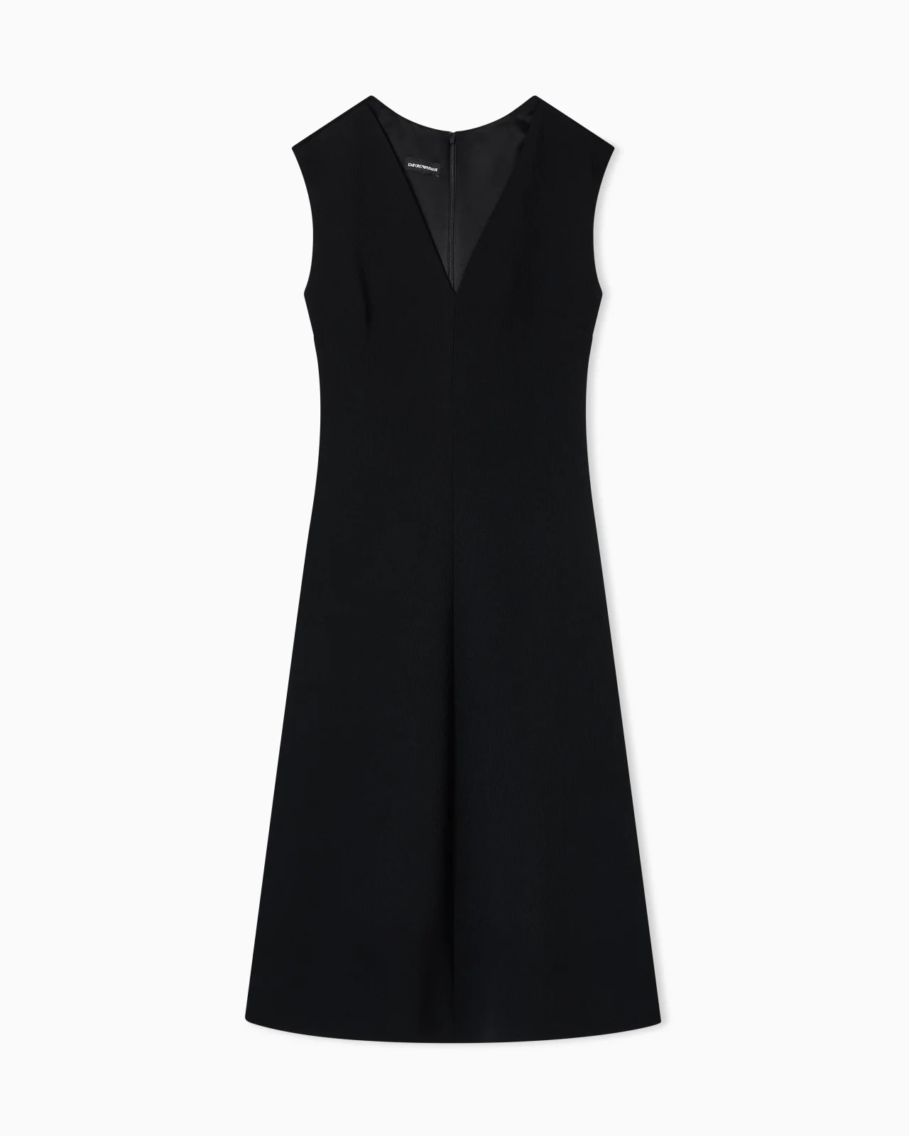 V-neck sleeveless dress with a flared design. The piece is made of fluid crepe that will add an elegant touch to any outfit, and the textured finish given by the embossed surface creates a slight visual and tactile bark effect. Length: 110 cm Fluid crepe Bark-effect finish V neck Sleeveless Back zip and hook closure Product Code: EW001717AF14727UC001