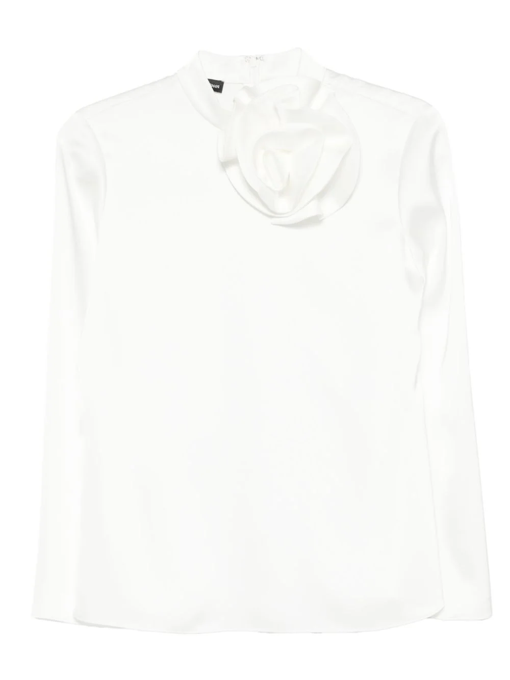 floral-applique blouse Highlights - White - Floral applique - Long sleeves - Round neck Imported Composition Polyester 100% Washing instructions Dry Clean Only
