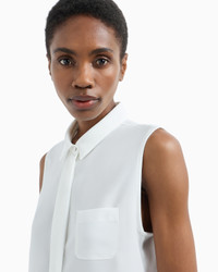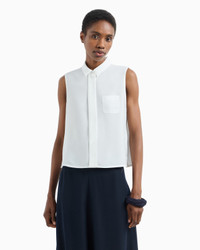 Sleeveless blouse with a classic collar and a patch pocket on the chest. The garment made of fluid crepe takes on an ultra feminine style that will add an elegant touch to any outfit. Fluid crepe Classic collar with a button Concealed button opening Sleeveless Product Code: EW000992AF12696U0006
