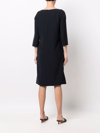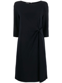 gathered-detail midi dress navy blue gathered detailing round neck three-quarter length sleeves mid-length Imported Composition Polyester 100% SIZE & FIT Model measurements Height 5 ft 10 in(1.78 m) Bust/Chest 33.07 in(84 cm) Hips 35.82 in(91 cm) Waist 25.98 in(66 cm) FittingInformation This piece fits true to size. We recommend you get your regular size Cut for a loose fit Made with a mid-weight non-stretch fabric Washing instructions Dry Clean Only