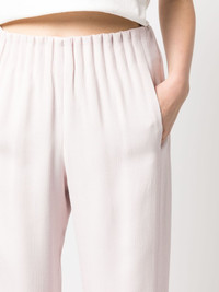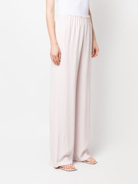 gathered wide-leg trousers Highlights - Light pink - Gathered detailing - Pull-on style - Wide leg - High-waisted - Elasticated waistband - Two side slit pockets Imported Composition Viscose 100% SIZE & FIT Model measurements Height 5 ft 10 in(1.78 m) Bust/Chest 31.49 in(80 cm) Hips 36.22 in(92 cm) Waist 25.59 in(65 cm) FittingInformation Designed with a wide-leg cut, these trousers allow for a close fit at the waist and offer a loose and roomy fit over the leg The elasticated waist allows for a comfortable fit Made from a midweight non-stretch fabric This piece fits true to size – take your usual size