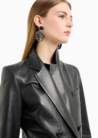Double-breasted jacket with shawl lapels, made of extremely supple, luxurious nappa lambskin: an exclusive material that has undergone a refined treatment similar to the one that is historically used in traditional Neapolitan glove-making, creating a leather that is sublimely supple to the touch. A classic design elevated by the finest leather. Product Code: EW000323AF108961UC001 Details Composition 100% Lambskin Glove-quality nappa leather Double-breasted Leather-covered buttons Long sleeves Pocket-square pocket Side welt pockets with flap Stretch-serge lining Fitting The model is 178 cm tall and is wearing size 40/S (Italian Size)