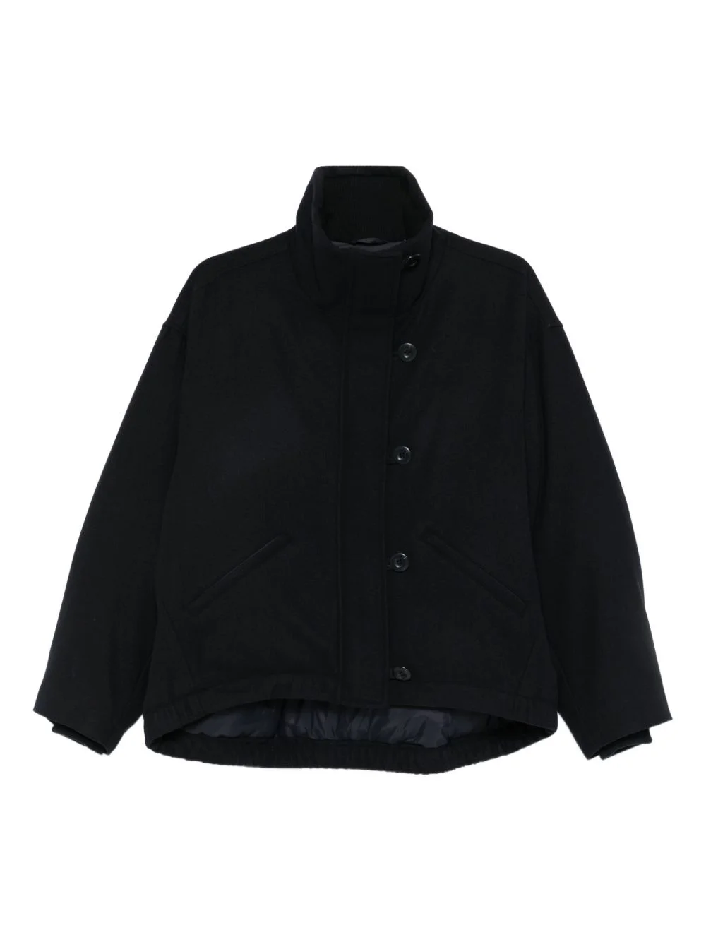 high-neck buttoned coat Highlights - Black - High neck - Button fastening - Front pockets - Rear elasticated hem - Long sleeves Imported Composition Virgin Wool 50%, Polyester 50% Washing instructions Read Manufacturer Guidelines