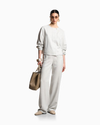 Trousers featuring an elasticated waist. The armure weave creates a dense all-over micro-pattern. The garment is part of the Icon capsule collection. Length: 118 cm Ankle cuffs: 25 cm Armure weave Elasticated waist with internal satin trim Side zip closure Serge side pockets Unlined garment Product Code: EW004091TE18969F8032