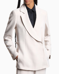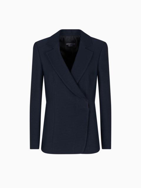 Blazer with rounded lapels on the neckline, made of a fluid armure fabric. The garment is fresh and comfortable and features an off-centre wrap-effect closure: the practical inner strap is inserted through the side slot and then secured by a button. The garment is part of the Icon capsule collection. Flowing armure fabric Lapel collar Off-centre closure with strap and internal button Long sleeves Satin lining Product Code: EW002231TE15812F1028