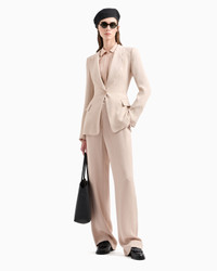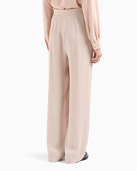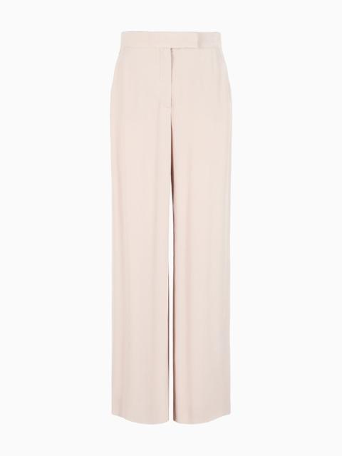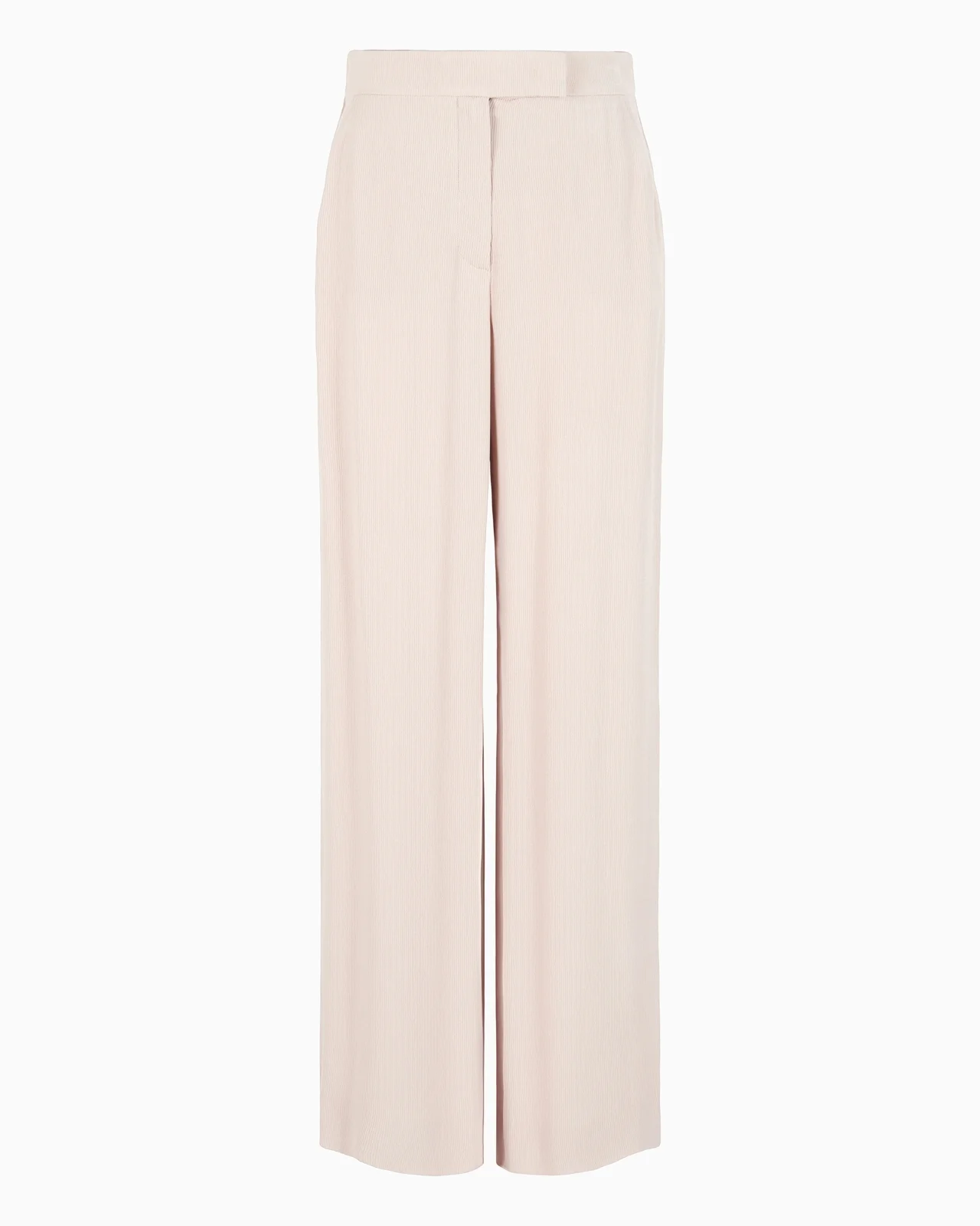 Palazzo trousers made from fluid, comfortable cannete cady. The fabric texture has the hallmark all-over, cannete-style ribbed weave. This piece is part of the Icon capsule collection: the essence of Emporio Armani, providing a modern interpretation of the brand’s DNA by updating the iconic shapes and volumes of its past, aimed at affirming a classic, evergreen allure. Product Code: EW000179TE105211U4134 Details Composition 54% Viscose 46% Acetate Cannete cady Palazzo cut Off-centre closure Zip, hook and back button Serge-lined side pockets Unlined garment Fitting The model is 178 cm tall and is wearing size 40/S (Italian Size)