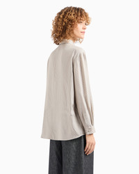 Classic-collar shirt in exclusive seersucker fabric, a hallmark Armani texture which gives the entire piece a dynamic, crinkly feel. This piece is part of the Icon capsule collection: the essence of Emporio Armani, providing a modern interpretation of the brand’s DNA by updating the iconic shapes and volumes of its past, aimed at affirming a classic, evergreen allure. Product Code: EW000169TE105261O4001 Details Composition 73% Viscose 14% Polyamide 13% Silk Seersucker fabric Classic collar Concealed buttoning Button covered in the same fabric as the collar, pocket and cuffs Faux pocket with flap Long sleeves Single-buttoned cuffs Unlined garment Fitting The model is 178 cm tall and is wearing size 40/S (Italian Size)