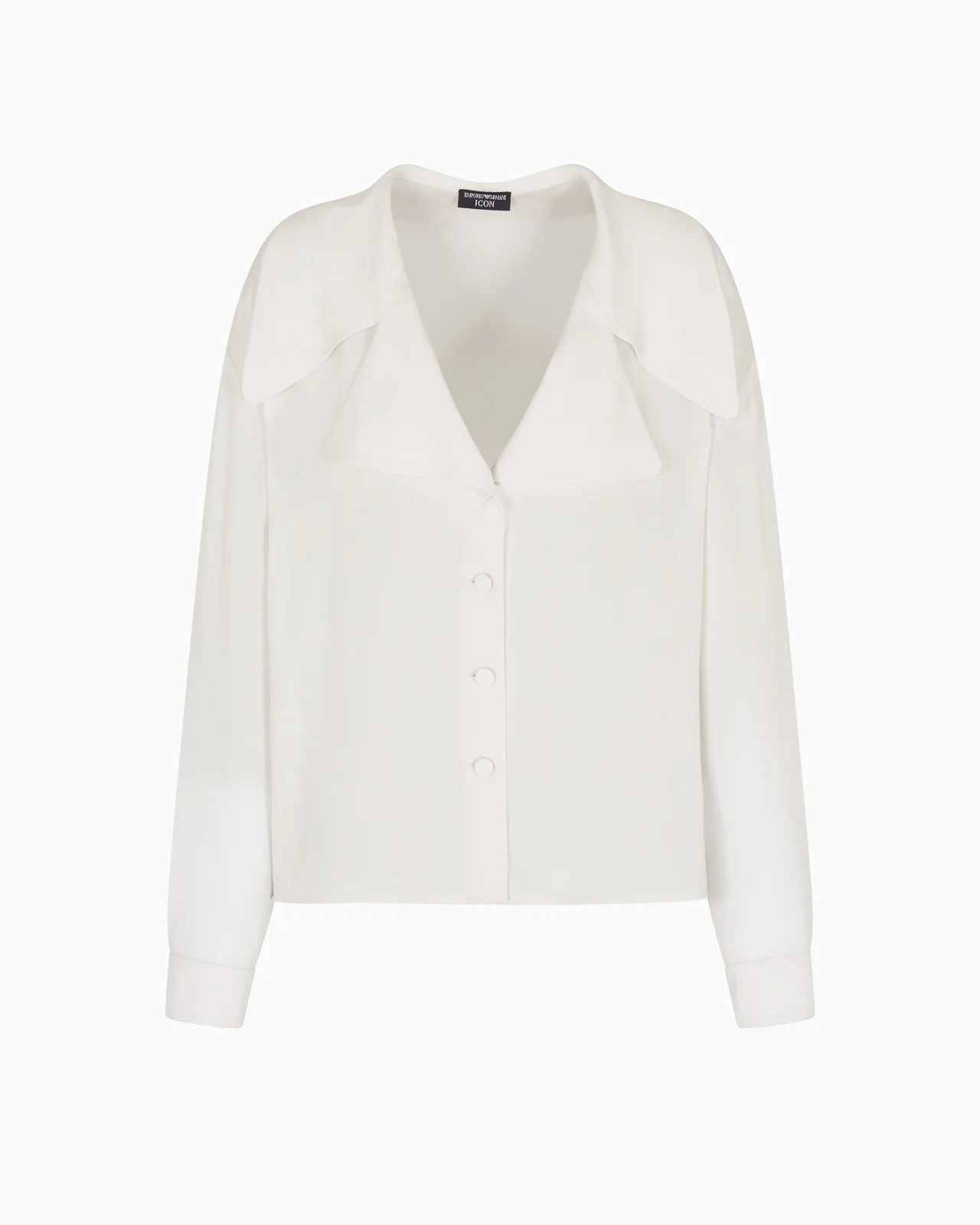 Shirt made of pure silk double georgette with wide lapels on the neckline and buttons covered in the same fabric. The garment is part of the Icon capsule collection. Silk georgette Wide lapel collar Closure with covered buttons in matching fabric Long sleeves Single-buttoned cuffs Unlined garment Product Code: EW002221TE10518UA032