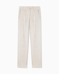 Trousers made of pure viscose fabric with an armure-weave base embellished with a jacquard that gives the texture a slightly iridescent effect. The garment is part of the Icon capsule collection. Length: 118 cm Ankle cuffs: 25 cm Armure weave Jacquard Off-centre waistband Inner waist with ottoman trim Front concealed zip fastening Serge side pockets Twill edging Unlined garment Product Code: EW003756TE18978F1028