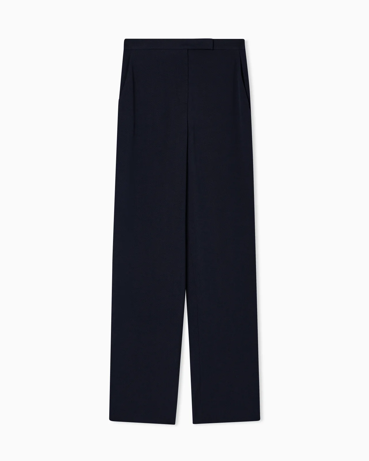Trousers made from a fluid armure fabric. The piece is fresh and comfortable, for an impeccable fit. The garment is part of the Icon capsule collection. Length: 118 cm Ankle cuffs: 25 cm Flowing armure fabric Off-centre waistband Inner waist with ottoman trim Front concealed zip fastening Serge side pockets Twill edging Unlined garment Product Code: EW003756TE18990FB046