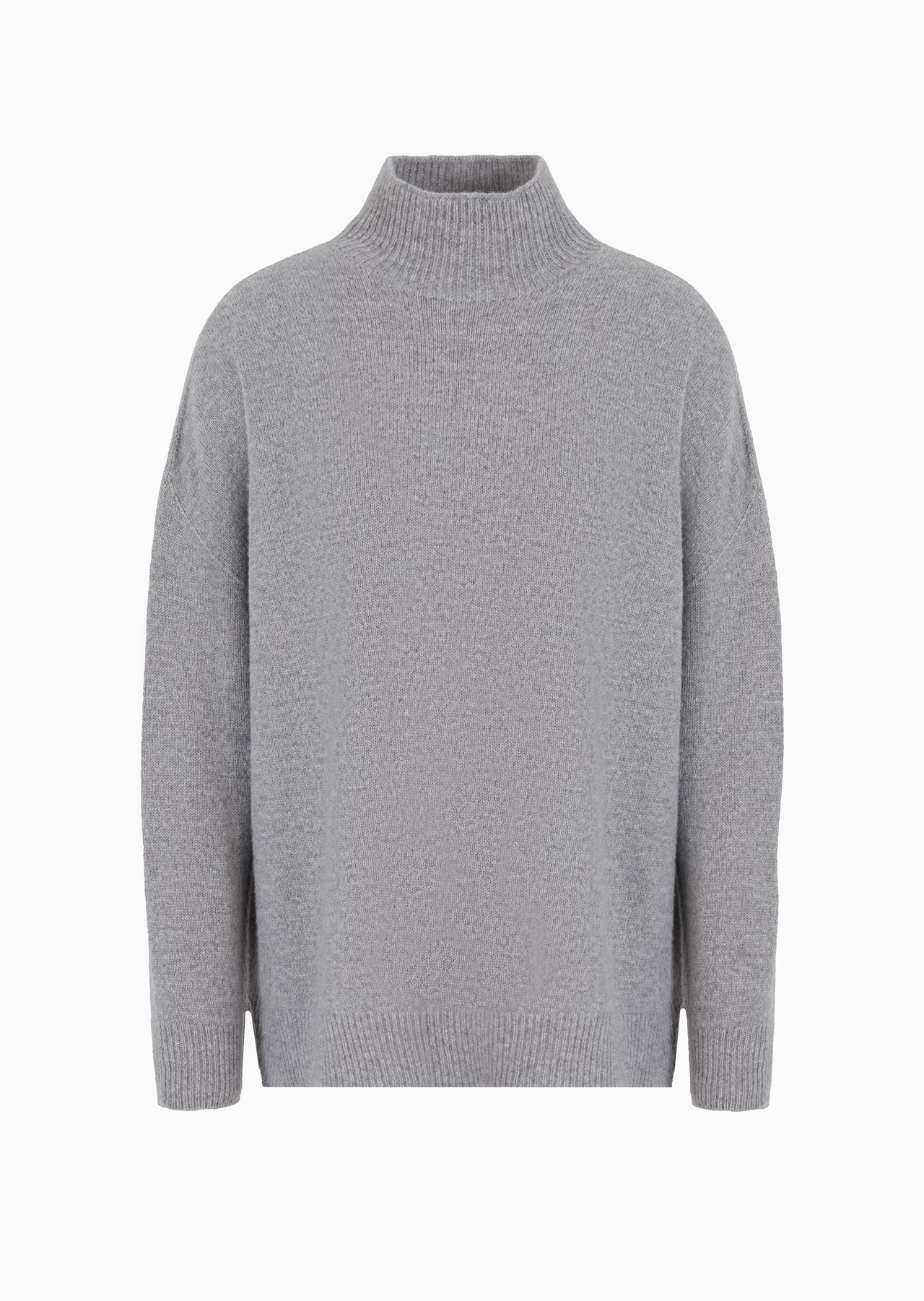 Mock-neck jumper made from a soft virgin wool and cashmere blend, with side slits and a herringbone knit under the sleeve. This piece is part of the Icon capsule collection: the essence of Emporio Armani, providing a modern interpretation of the brand’s DNA by updating the iconic shapes and volumes of its past, aimed at affirming a classic, evergreen allure. Product Code: EW000239AF107491F8035 Details Composition 90% Virgin Wool 10% Cashmere Plain knit Mock neck Long sleeves Side slits Ribbed trim Made in Italy Fitting The model is 178 cm tall and is wearing size 40/S (Italian Size)