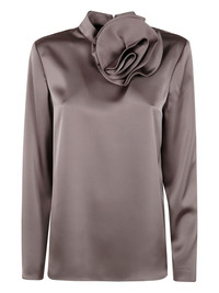 floral applique shirt Highlights - Taupe brown - Floral applique - High neck - Long sleeves - Rear zip fastening - Straight hem Imported Composition Polyester 100% Washing instructions Read Manufacturer Guidelines