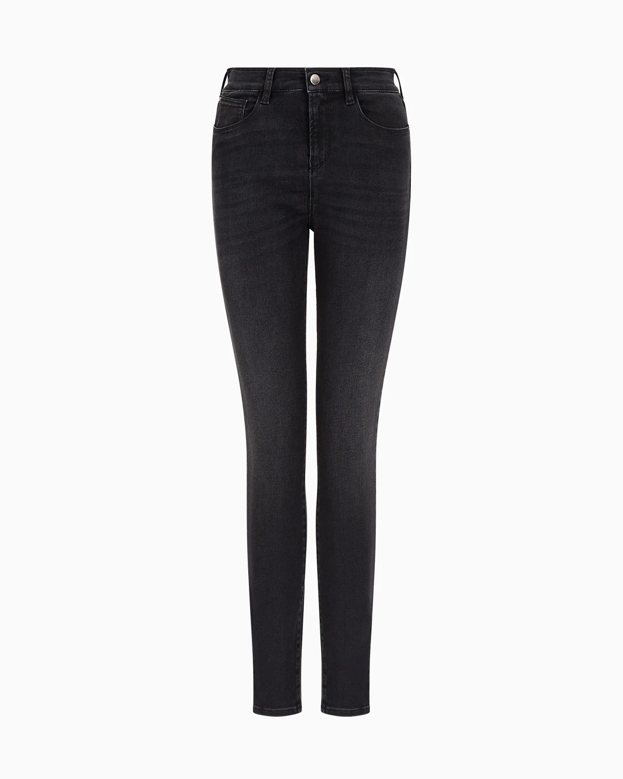 These jeans feature a snug-fitting super-skinny leg, enhanced by a flattering high waist that elongates the figure. The stone-washed fabric embellishes the piece with a modern touch. Skinny fit. The piece belongs to the Essentials selection, the Emporio Armani capsule collection that makes a statement of enduring style: both elegant and practical, it works for numerous combinations on a wide array of occasions. The colour palette includes the brand’s characteristic neutral shades, combined with a minimalist design to create a series of key pieces for the female wardrobe. Product Code: 8N2J202DI7Z10005 Details Composition 74% Cotton 13% Modal 9% Elastomultiester 4% Elastane Skinny fit High waist with belt loops Five pockets Skinny leg Zip and button closure Logo tag Metallic eagle plate Fitting Skinny fit The model is 178 cm tall and is wearing size 27