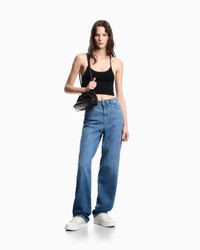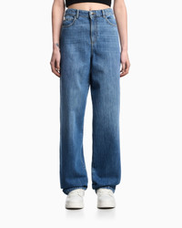 Mid/high-rise jeans with a straight leg, made from pure cotton denim. Made distinctive by a leather jacron with a gold logo. Regular fit. Regular fit Denim Medium-high waist Belt loops at the waist Five pockets Straight cut Leather logo tag Metal eagle plate at the back Product Code: EW000736AF12676MB002