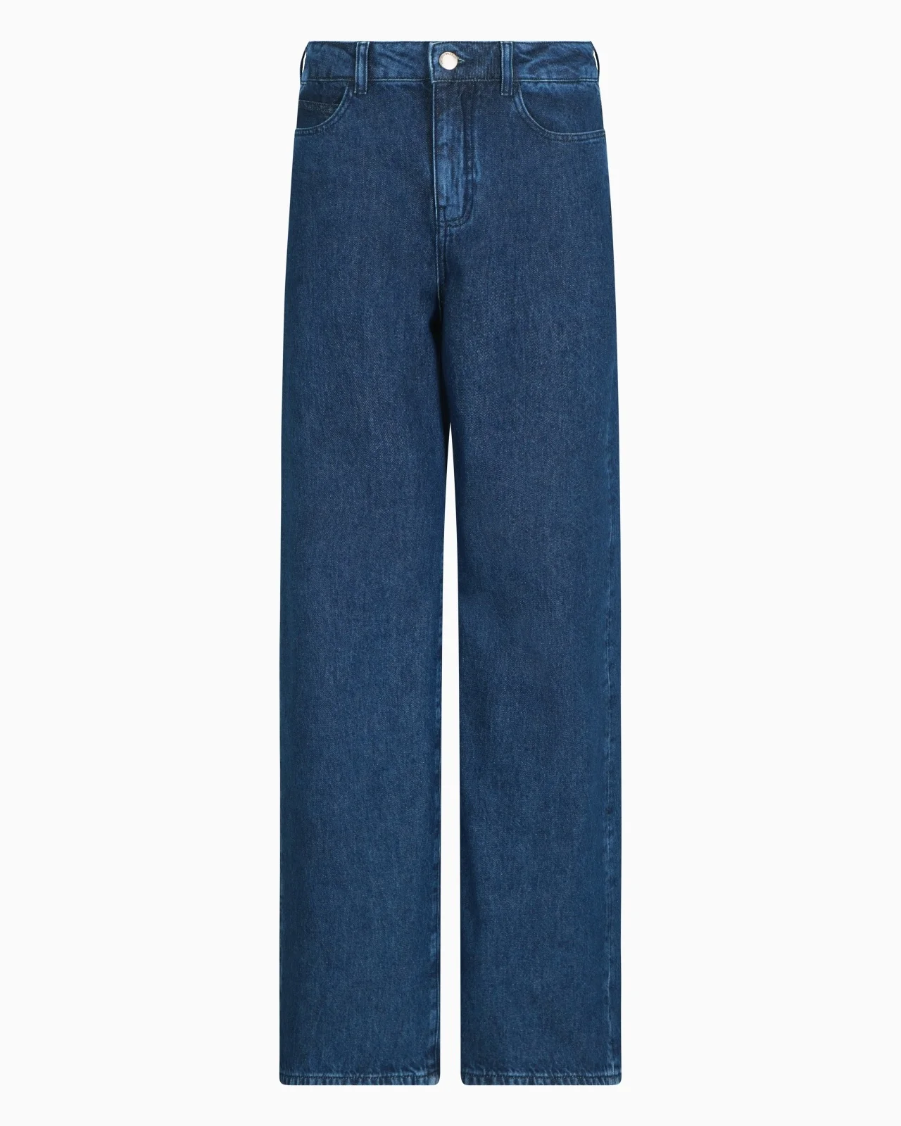 These jeans are defined by a modern style and casual, comfortable structure, enhanced by a medium waist and wide-leg cut. Relaxed fit. The piece features the application of all-over matching rhinestones that elevate and embellish a style designed to be worn day&night. Relaxed fit 14 oz denim Mid-rise waist with belt loops Five pockets Zip and button closure Leather logo tag Eagle logo on the back pocket Matching stitching Product Code: EW000737AF13298MB001