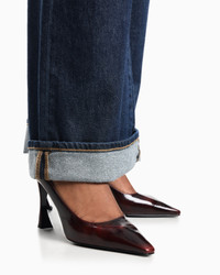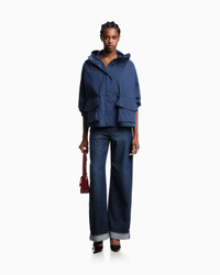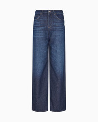 These jeans are defined by a modern style and clean, linear structure, enhanced by a mid-rise waist and wide-legged palazzo cut. Made of denim and embellished with a vintage-effect fabric treatment that gives a modern touch. The style is instantly recognisable thanks to the leather logo tag on the back. Relaxed fit. Relaxed fit Denim Mid-rise waist Five pockets Eagle plate Leather logo tag Product Code: EW000737AF17033MB001
