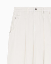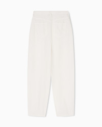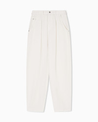 Five-pocket trousers, featuring an oval leg and made of garment-dyed Lyocell. Lyocell, an environmentally-friendly semi-synthetic fibre, makes the fabric particularly light, soft, breathable and durable. Relaxed fit. The garment is part of the Icon capsule collection. Length: 106 cm Ankle cuffs: 18.5 cm Garment dyed Belt loops and pleats at the waist Zip and button closure Five pockets Coin pocket with EA plate Matching micro-eagle embroidery at the back Product Code: EW003765AF22113U1055