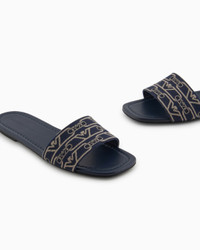 Sandals with a canvas band upper with an all-over monogram jacquard weave. A selection of functional, versatile footwear made distinctive by the metal logo with the iconic eagle. Jacquard canvas All-over monogram Leather insole Made in Italy Product Code: X3P847XR381E616