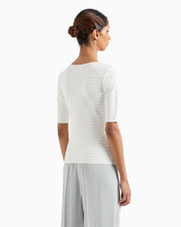 Deep V-neck jumper made of nylon jersey and embellished with an all-over sophisticated embossed jacquard motif. The piece belongs to the Essentials selection, the Emporio Armani capsule collection that makes a statement of enduring style: both elegant and practical, it works for numerous combinations on a wide array of occasions. The colour palette includes the brand’s characteristic neutral shades, combined with a minimalist design to create a series of key pieces for the female wardrobe. Two-way stretch jersey Jacquard V neck Three-quarter sleeves Product Code: 8N2M9A2JHFZF121