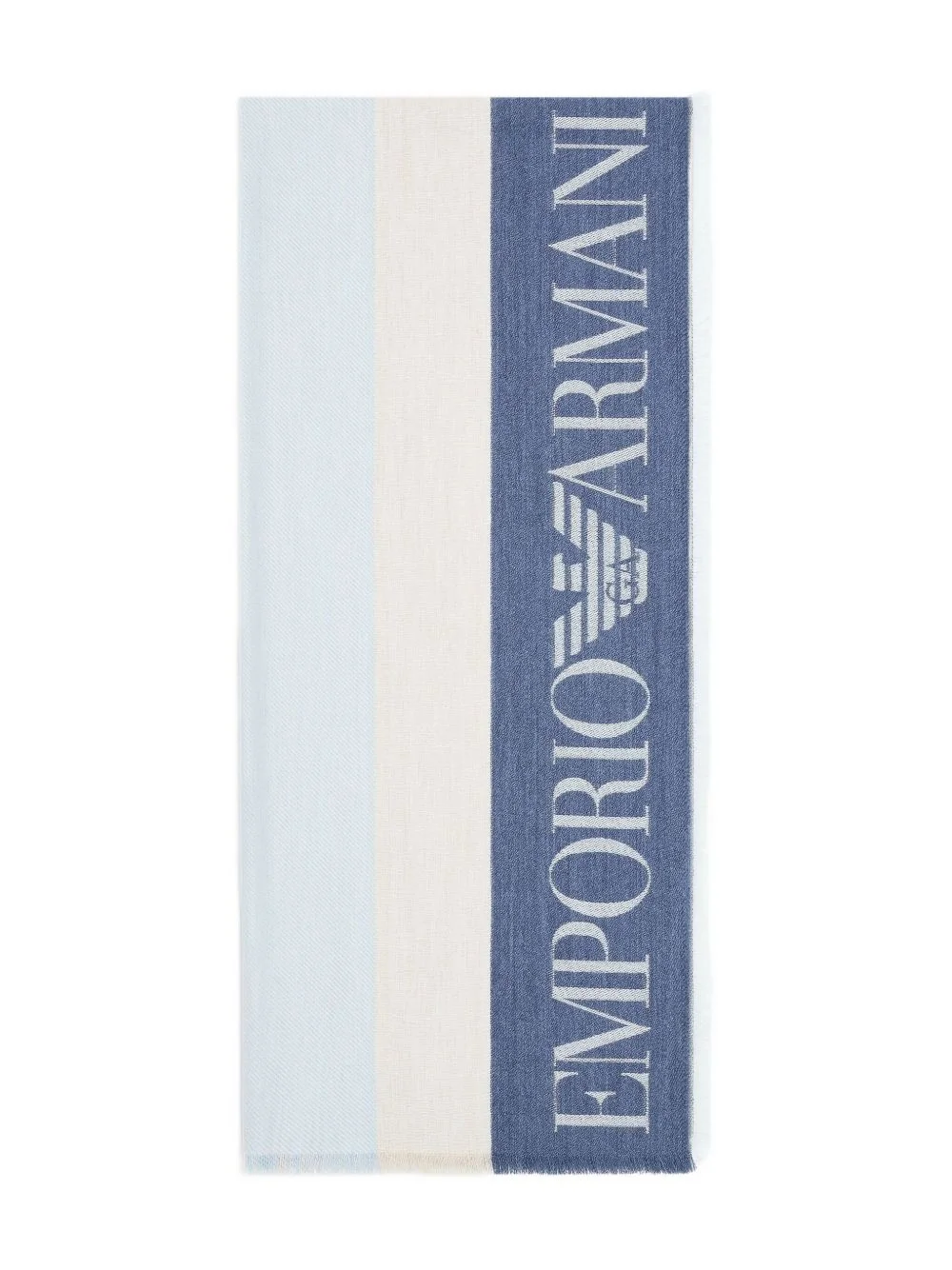 logo-embellished striped scarf Highlights - Light blue - Three-stripe pattern - Frayed edges - Logo embroidery - Rectangular shape Made in Italy Composition Acrylic 71%, Polyester 19%, Viscose 10% SIZE & FIT Measurement LENGTH 70.86 in(180 cm) WIDTH 31.49 in(80 cm)