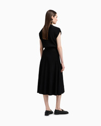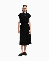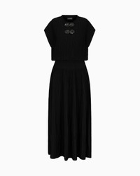 Long dress with a balloon waist with an ottoman-effect knit that creates a succession of stripes that become all-over refined raised ribs. The style is embellished with a teardrop opening neckline and removable jewel details with press-studs that elegantly complete the garment with an original touch. Length: 120 cm Ottoman fabric Flared style Teardrop opening Concealed press-stud neckline Removable jewel details Cap sleeves Product Code: EW001441AF15084UC001
