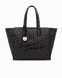 Oversized shopper bag with double handle and logo charm. A series of accessories featuring a dense all-over monogram jacquard, available in functional styles designed for the Emporio Armani woman always on the go. Measurements: 64.5 x 21 x 34.5 cm Jacquard canvas All-over monogram Two handles Logo charm Logo embroidery Zip closure Product Code: EW000561AF12993FB237