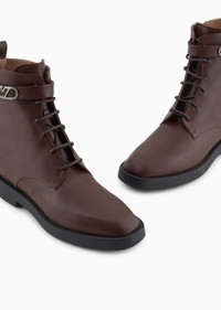 Leather lace-up ankle boots with Icon logo strap