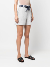 high-waisted cotton shorts blue/white cotton contrast stitching paisley-print belt high-waisted concealed front fastening belt loops straight leg Imported Composition Outer: Linen/Flax 100%, Cotton 97%, Spandex/Elastane 3% Lining: Cotton 97%, Spandex/Elastane 3% SIZE & FIT Model measurements Height 5 ft 10 in(1.78 m) Bust/Chest 33.46 in(85 cm) Hips 36.22 in(92 cm) Waist 23.22 in(59 cm) FittingInformation This piece fits true to size. We recommend you get your regular size Designed to be fitted at the waist and hips, loose over the leg Made with a mid-weight non-stretch fabric