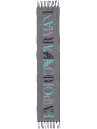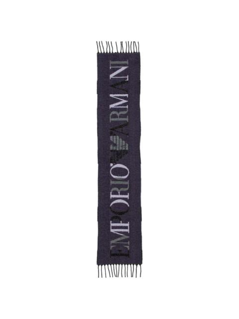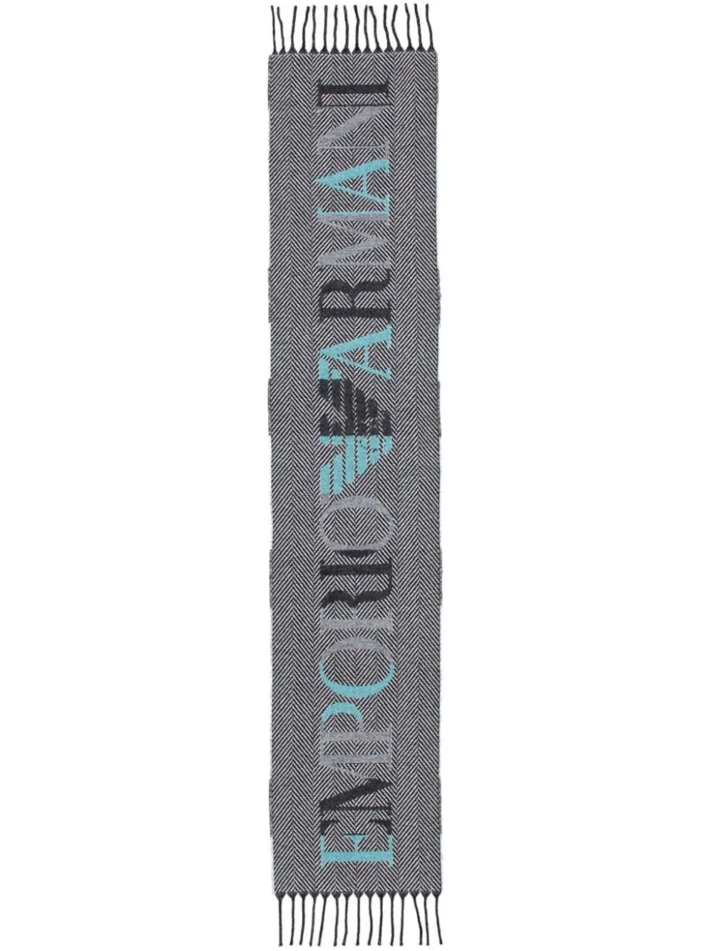 logo-intarsia scarf Highlights - Black - Wool blend - Chevron knit - Intarsia-knit logo - Fringed edge Imported Composition Wool 72%, Acrylic 16%, Polyester 10%, Polyamide 2% SIZE & FIT Measurement LENGTH 66.14 in(168 cm) WIDTH 14.17 in(36 cm)