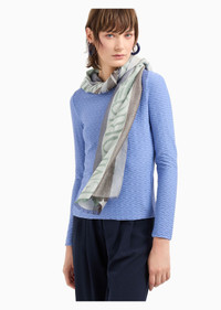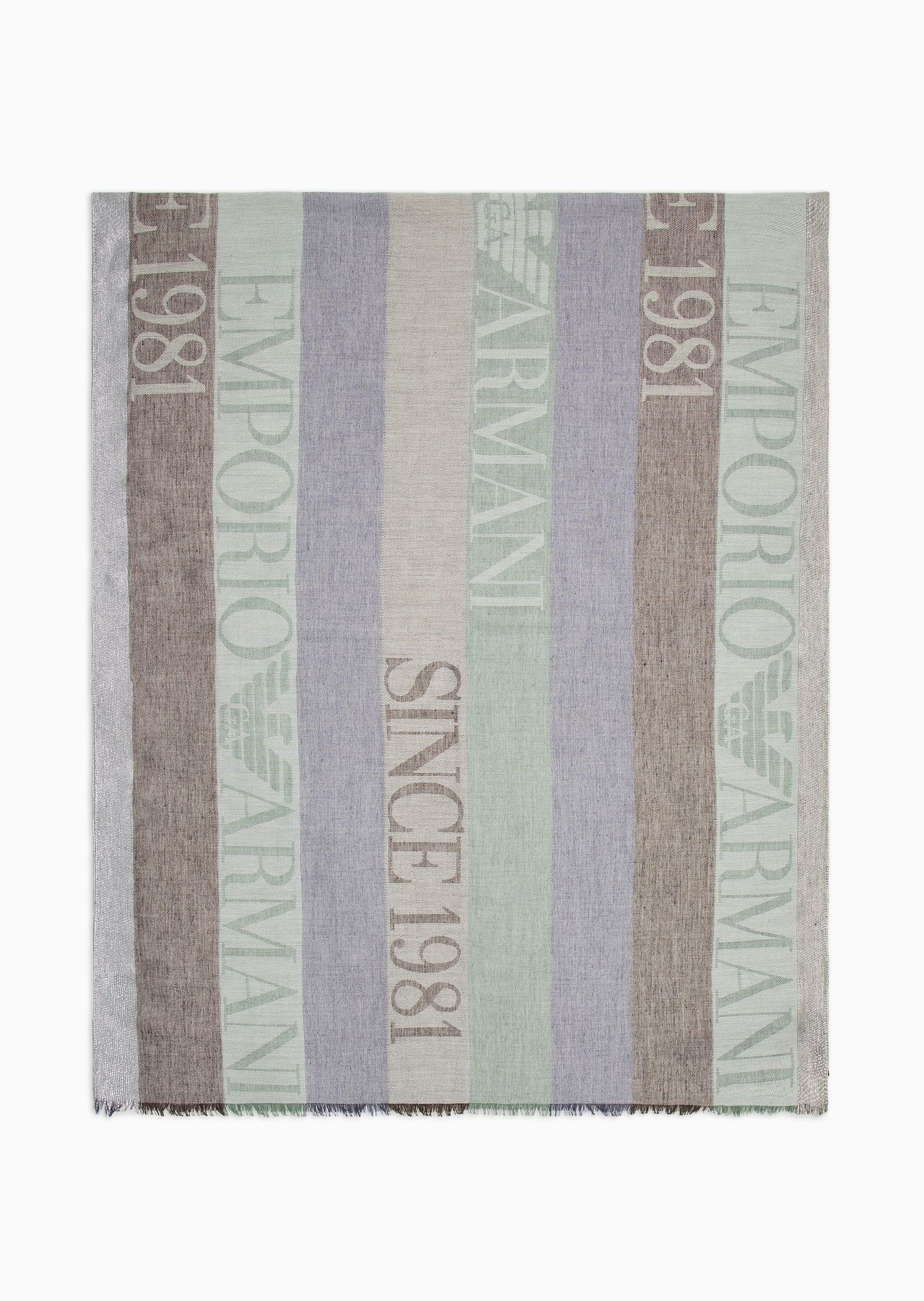 Stole with jacquard motif with vertical bands that create a gradient palette embellished with the Emporio Armani Since 1981 logo. Product Code: 6352734F317100081 Details Composition 65% Polyester 35% Viscose Measurements: 180 x 80 cm Jacquard Logo Made in Italy