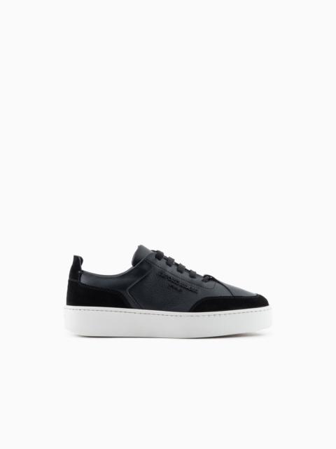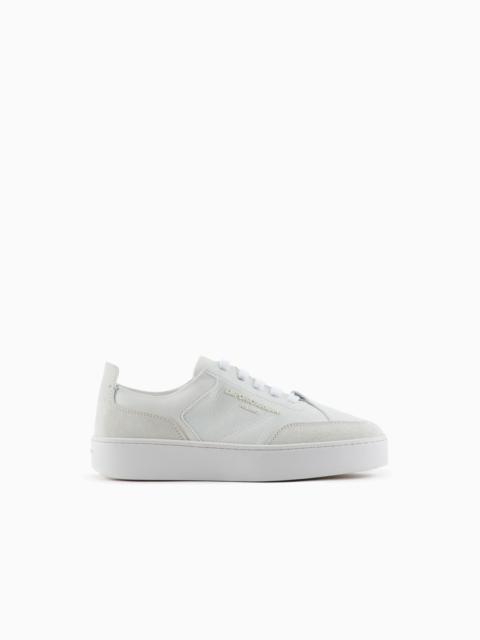 Leather sneakers with matching suede details and embossed logo on the side. An essential style, developed in a monochromatic mix of soft materials that make the shoe comfortable, lightweight, versatile and transversal. Product Code: X3X207XN391100002 Details Composition 100% Bovine leather Leather Suede details Embossed logo Lace-up fastening Made in Italy