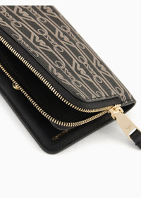 Bifold wallet with card holder and zipped coin pocket. A series of accessories featuring a dense all-over monogram print available in functional styles designed for the Emporio Armani woman always on the go. Product Code: EW000369AF119511FC033 Details Composition 100% Polyester Measurements: 13 x 9 x 1.5 cm All-over monogram Zipped coin purse Inner pockets