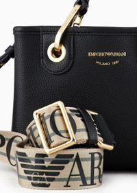 The Essentials selection makes a statement of enduring style: both elegant and practical, it works in numerous combinations on a wide array of occasions. MyEA Bag is Emporio Armani’s ultimate iconic bag: choose your style and embellish it with accessories that reflect who you are. Deer-print mini bag with magnetic closure and screen-printed logo. The item is embellished with removable gold-tone carabiner clips and tags with embossed logo lettering that match the bag. With a beige detachable logo strap and silver interior. Measurements: 21 x 16 x 8 cm. Product Code: Y3D176YFO5B185218 Details Composition 100% Polyurethane Coated fabric Brand logo Solid color Detachable shoulder strap Magnetic fastening Double handle Internal compartments