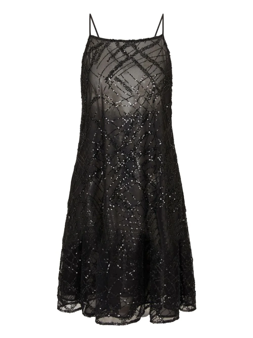sequin-embellished backless mini dress Highlights - Black - Sequin embellishment - Backless design - Spaghetti straps - A-line skirt - Sheer overlay Imported Composition Fabric 100% Washing instructions Read Manufacturer Guidelines