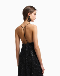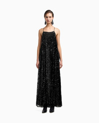Long dress with a round neckline and thin shoulder straps that form a T-shaped crossover at the back. An exclusive, luxurious style made of sheer tulle encrusted with micro sequins and micro jet beads in an embroidery that covers the entire style. Length: 143 cm All-over sequin and jet embroidery Spaghetti straps T-shaped crossover at the back Back zip closure Chiffon lining Product Code: EW001346AF10242UC001
