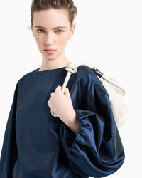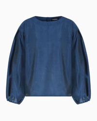 Blouse with wide long sleeves, a round neckline and small button closure, made of technical muslin, a fabric that adds sheen to the garment. The perfect style to complete daytime and eveningwear looks. Technical muslin Rounded neckline Long sleeves Gathered cuffs Back button closure Slit at the back Unlined garment Product Code: EW001430AF16041UB096