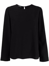 long-sleeve silk top black silk round neck rear button fastening long sleeves straight hem Imported Composition Silk 100% SIZE & FIT Model measurements Height 5 ft 9 in(1.74 m) Bust/Chest 32.28 in(82 cm) Hips 35.82 in(91 cm) Waist 24.01 in(61 cm) FittingInformation This piece fits true to size. We recommend you get your regular size Cut for a loose fit Made with a mid-weight non-stretch fabric
