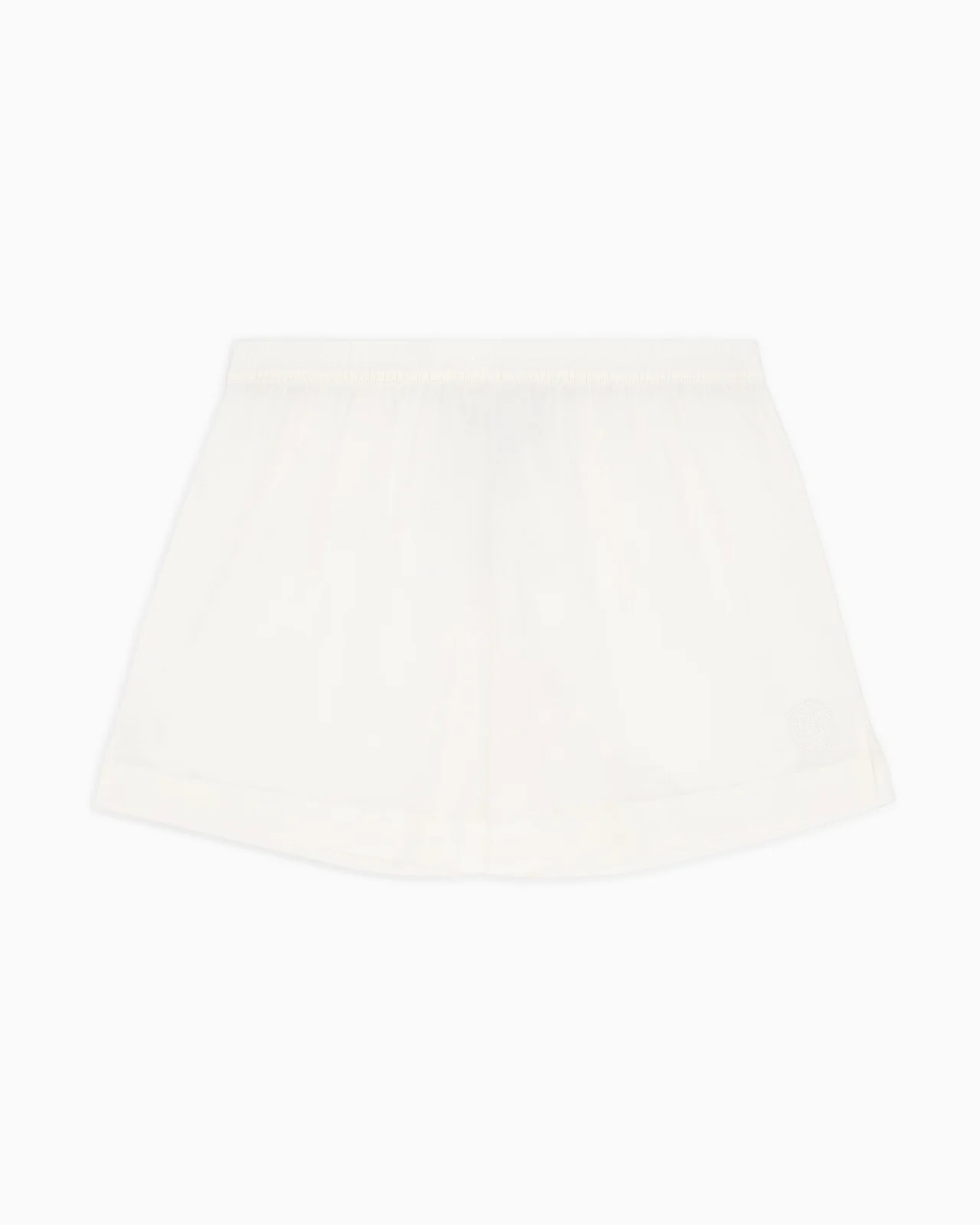 Pure cotton loungewear shorts with an elasticated waist. A style with clean, essential lines with an embroidered EA logo, on the hem, perfect for use as loungewear and for wearing with the collection’s top. Cotton Elasticated waist Logo embroidery Side slits Product Code: EW000533AF10892U1131