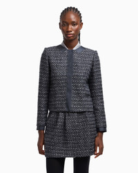 Jacket with zip fastening made of lurex tweed, a textured fabric that, thanks to the mix of fibres, takes on a sophisticated interwoven effect that enhances the exclusiveness of the piece and ensures sparkle and radiance. Lurex tweed Crew neck Zip closure Long sleeves Single-buttoned cuffs Side pockets Grosgrain trim Lined garment Product Code: EW001713AF14268F8155