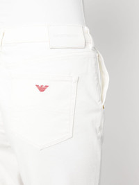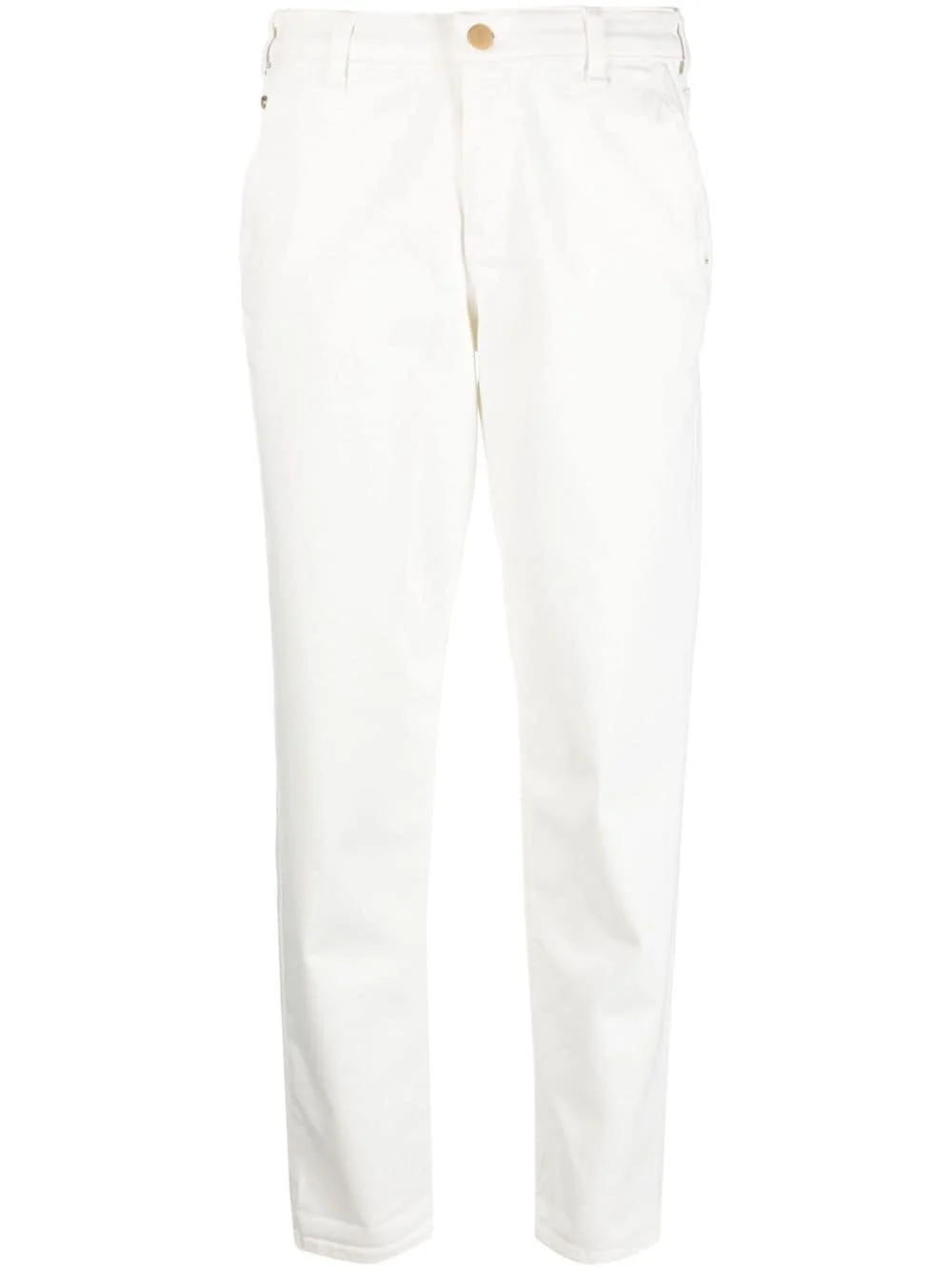 mid-rise straight-leg trousers Highlights - Ivory white - Cotton blend - Embroidered logo to the rear - Logo patch to the rear - Straight leg - Mid-rise - Concealed fly and button fastening - Belt loops - Classic five pockets - Turn-up hem Imported Composition Cotton 58%, Polyester 27%, Viscose 13%, Elastane 2% SIZE & FIT Model measurements Height 5 ft 10 in(1.78 m) Bust/Chest 31.49 in(80 cm) Hips 36.22 in(92 cm) Waist 25.59 in(65 cm) FittingInformation Designed for a tapered fit, these trousers allow for a close fit at the waist and a loose unrestricted fit over the leg with a closer fit towards the ankle Made from a midweight stretch fabric, this piece offers elasticity and flexibility when worn This piece fits true to size – take your usual size