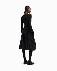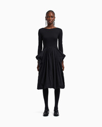Long-sleeved crew-neck dress with the top made of stretch Milano-stitch fabric with a texture that ensures a comfortable yet sophisticated fit. The large, voluminous skirt with side pockets is made of taffeta. The bright, shiny appearance of the taffeta, with its rustling, light and glossy feel, makes this dress perfect for a wide array of occasions. Length: 110 cm Milano stitch Taffeta Boat neck Long sleeves Pleated skirt Side pockets Back concealed zip Unlined garment Product Code: EW002782AF12303UC001