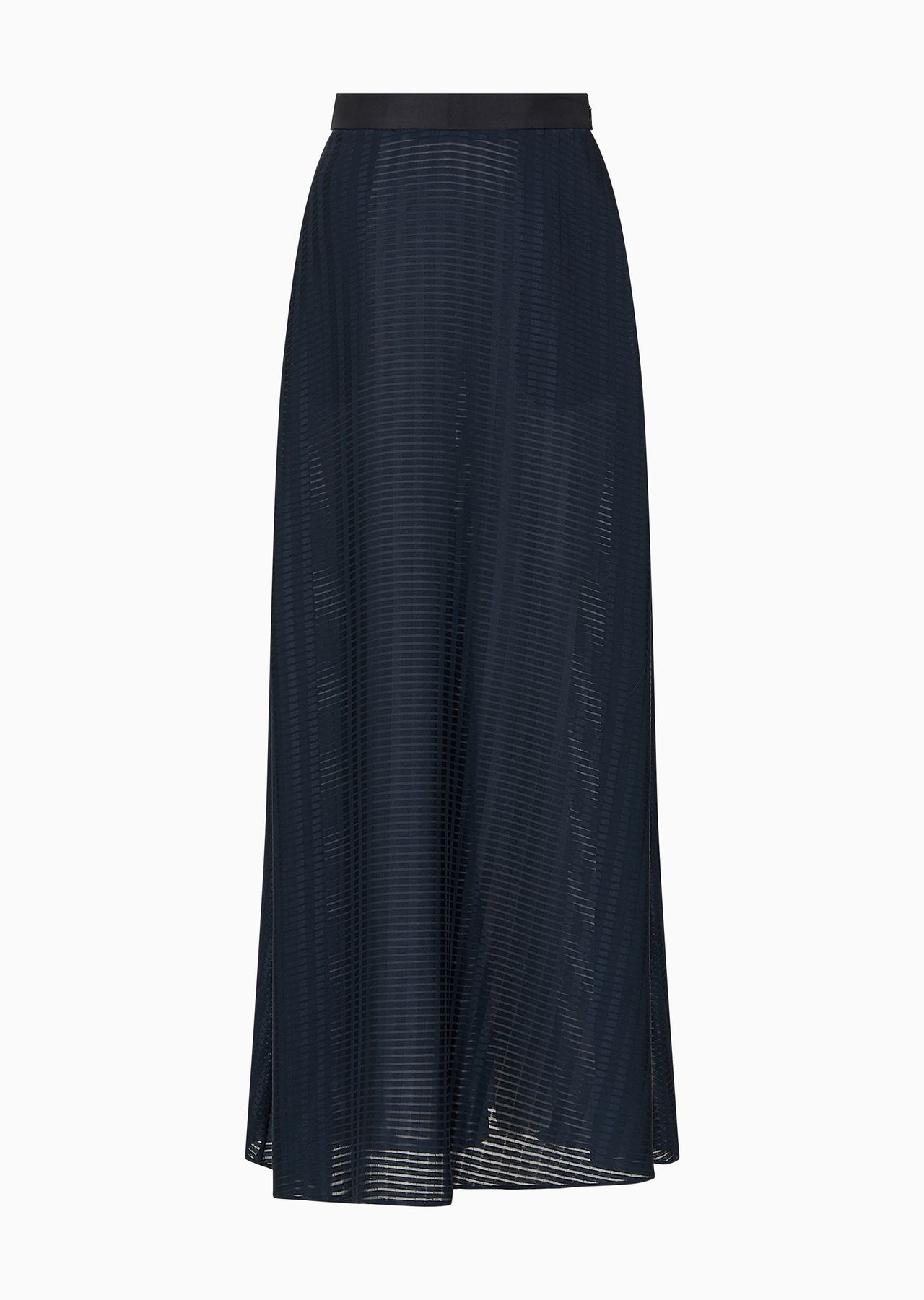 Long skirt with satin waist. The texture is characterised by an original motif of alternating rectangles in a shiny-matte effect. Product Code: E3NN1DF99121927 Details Composition 100% Polyester Length: 108 cm Satin waistband Side pockets Concealed side zip Lined garment Fitting The model is 178 cm tall and is wearing size 40/S (Italian Size)
