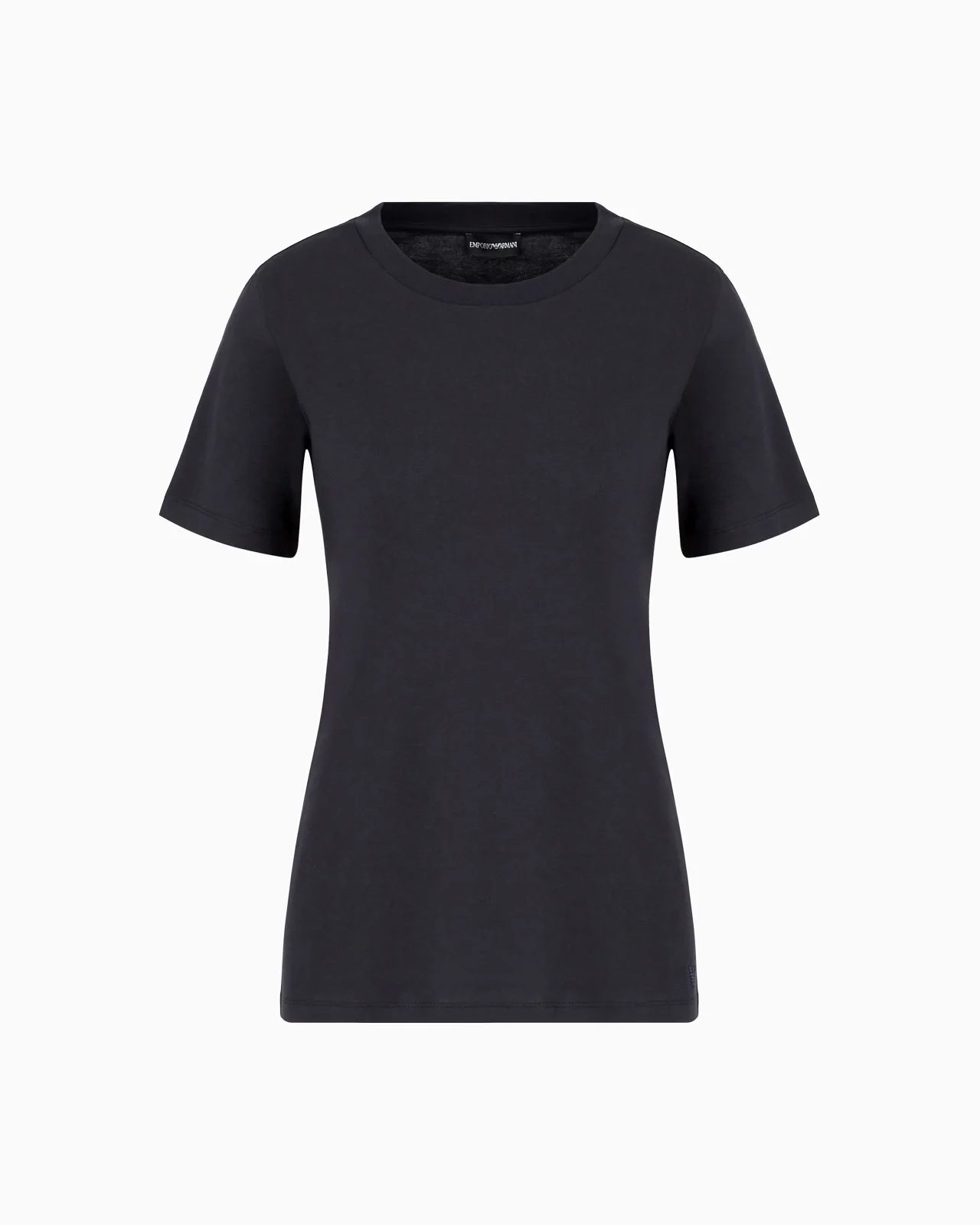 The Essentials selection makes a statement of enduring style: both elegant and practical, it works to numerous combinations on a wide array of occasions. The colour palette includes the brand’s characteristic neutral nuances, such as white, black and blue which, combined with a minimalist design, create a series of key pieces for the female wardrobe. Thanks to its simple cut, this women’s T-shirt is an essential staple. Pima cotton, the most sought-after cotton in the world thanks to its softness and sheen, elevates the garment. Matching embroidered iconic eagle on the left side of the hem. Regular fit. Product Code: 8N2T922J87Z10926 Details Composition 100% Cotton Jersey Brand logo Solid color Round collar Short sleeves Fitting The model is 178 cm and is wearing size 40.