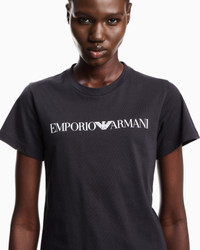 This crew-neck T-shirt made of organic cotton jersey is created using methods and materials that have a low impact on the environment, in line with the brand’s desire for an increasingly sustainable approach. The Emporio Armani logo print centred in the design is a constant of undeniable style. The piece belongs to the Essentials selection, the Emporio Armani capsule collection that makes a statement of enduring style: both elegant and practical, it works for numerous combinations on a wide array of occasions. The colour palette includes the brand’s characteristic neutral shades, combined with a minimalist design to create a series of key pieces for the female wardrobe. Product Code: 8N2T9C2J53Z1F903 Details Composition 100% Cotton Organic cotton Crew neck Short sleeves Logo print Fitting The model is 178 cm tall and is wearing size 40/S (Italian Size)